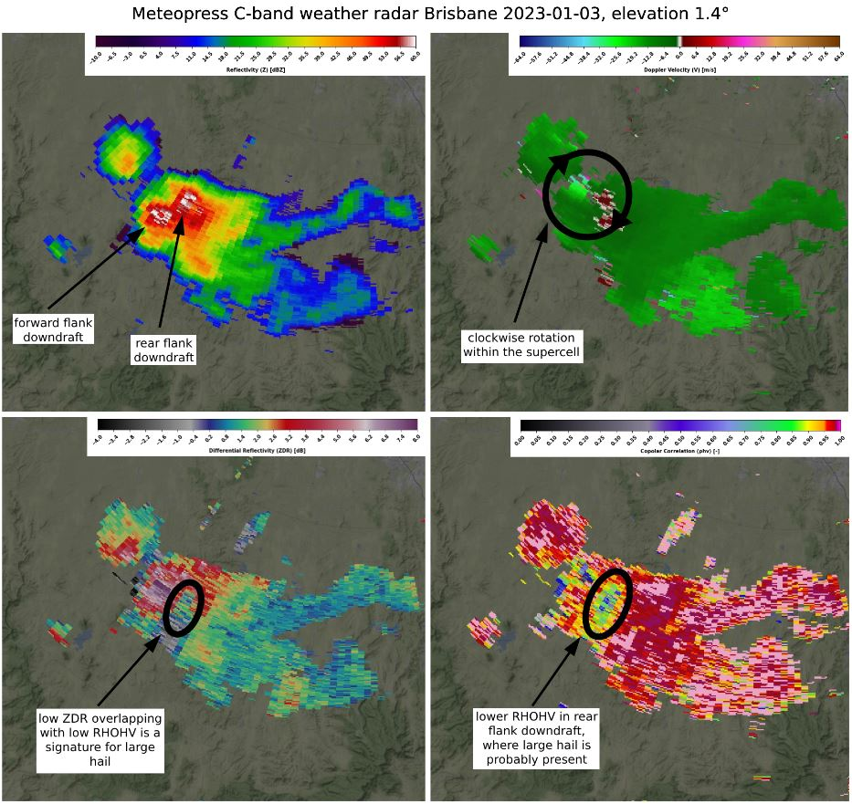 Typical characteristics of a supercell on radar data